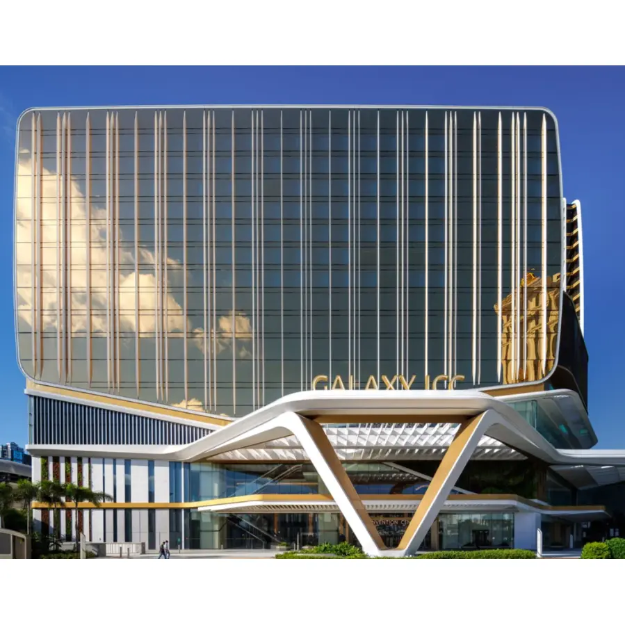 불규칙한 모양의 알루미늄 단일 패널은 단일 곡선 및 이중 곡선 표면을 포함한 복잡한 곡선 표면 처리를 지원하여 시각적으로 눈에 띄는 건물 외관을 만들 수 있습니다. 또한 천장이 높은 로비, 아트리움 디자인, 엘리베이터 홀 및 기타 내부 공간에 적응하여 불규칙한 모양의 내부 커튼월에 맞게 맞춤화할 수 있으며, 건축적 기능성과 미적 디자인의 균형을 맞추고 기존 평면형 커튼월의 한계를 깨뜨립니다.